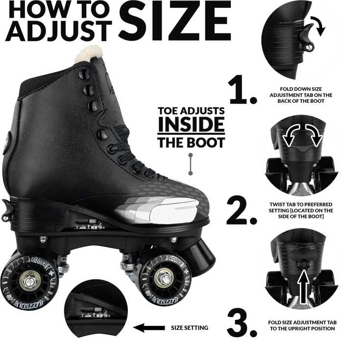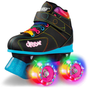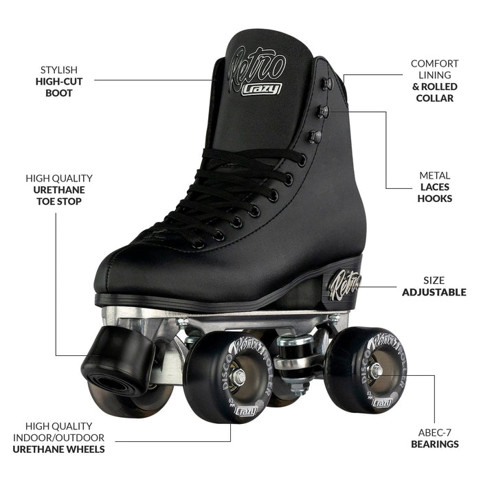 Crazy Skates has a broad selection of Roller Skates to fit your personal style and skating type. These include sneaker style skates, classic high boots, glitter boots and size adjustable quad skates. We also sell skates for every different purpose as well, from speed skates to artistic skates to general purpose indoor/outdoor skates. Whatever you need, from the rink to the street, Crazy Skates has you covered!