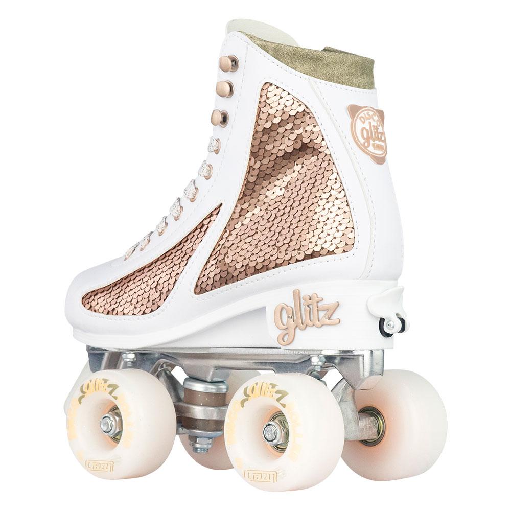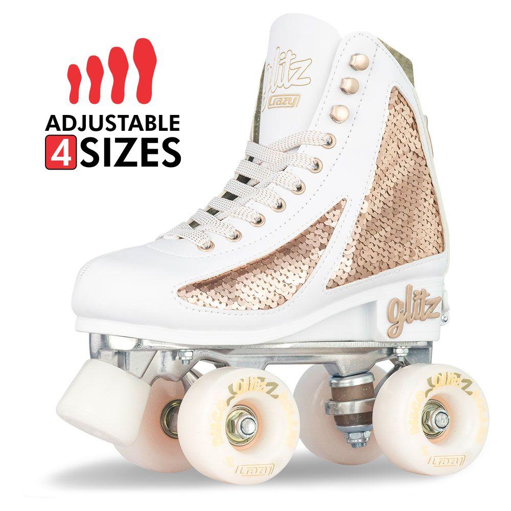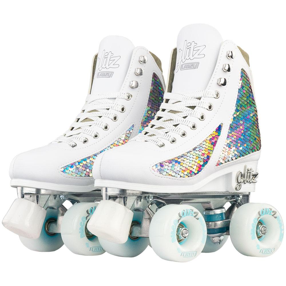 The GLITZ skates are both comfortable and stylish, with a sequin finish that has two-tone panels that can be swiped with your hand to create different colored custom designs. They're perfect for outdoor skating and compatible with indoor, road, and rink skating.