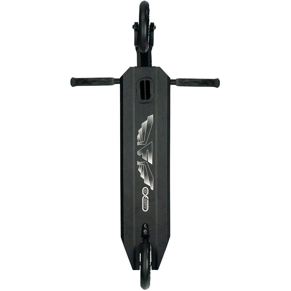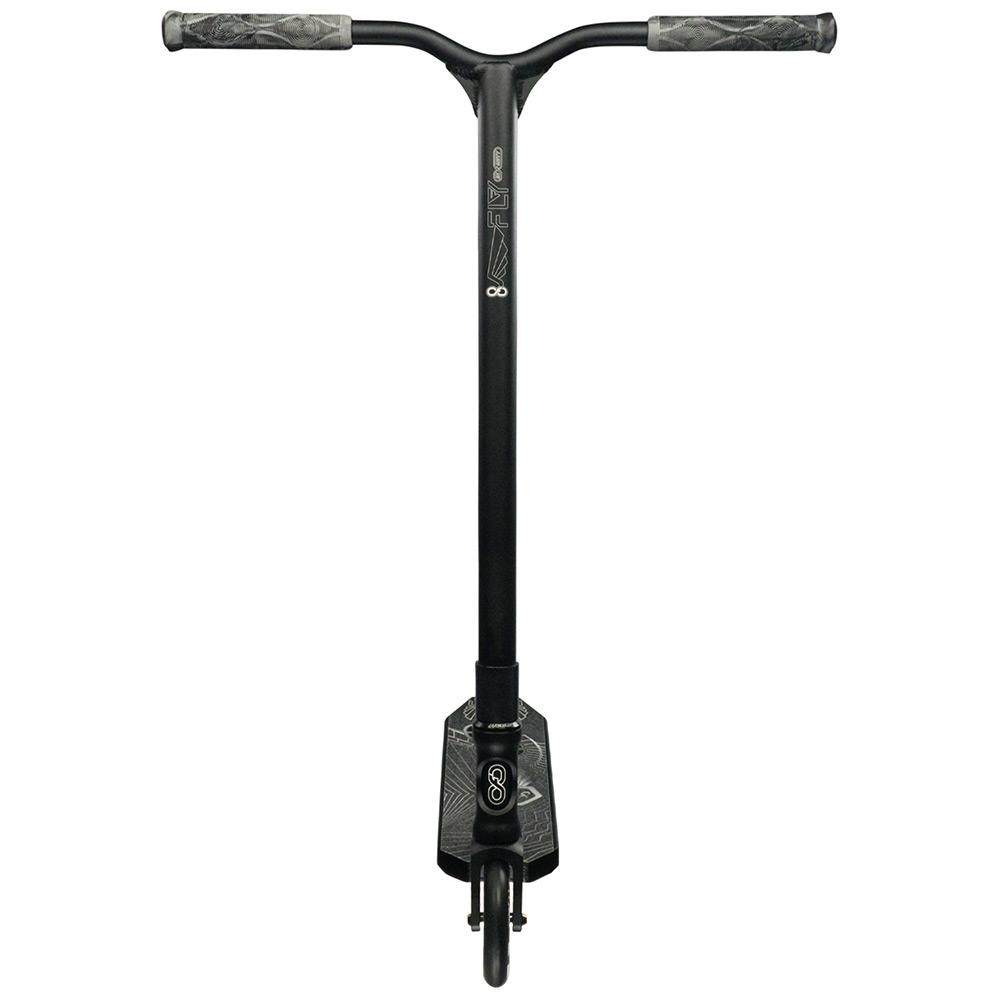 Equipped with top-of-the-line components, the FLY sets a new standard for performance. The 120mm alloy core spoke wheels provide a smooth and fast ride, ensuring you can take your scooter to new heights and perform tricks with ease. The large wing FLY graphics, laser engraved into the anodized matte black finish on the deck, add a touch of sleekness and style that sets the FLY apart from the competition.
