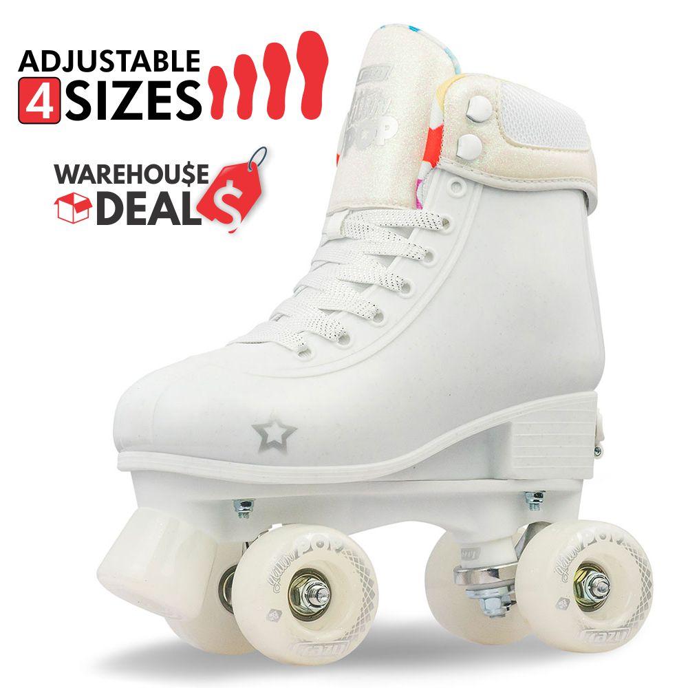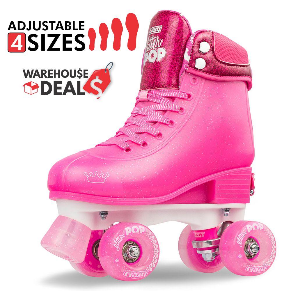 Glitter Pop Size Adjustable Roller Skate that quickly and easily adjusts to fit four different shoe sizes. Allowing the skates to grow with your child and saves you from having to buy new skates every time their feet grow, while also providing your boy or girl with a long-lasting pair of skates.