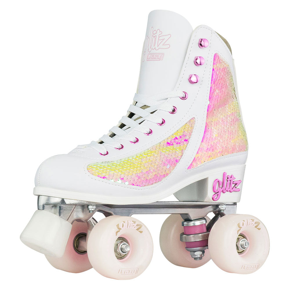 These skates are built to last, with high-quality alloy trucks and alloy skate plates that provide a stable base for skating. The glitter-infused bushings give you that smooth and comfortable ride, while the white glitter laces and metal lace hooks ensure that your feet are securely locked in place as you speed along.