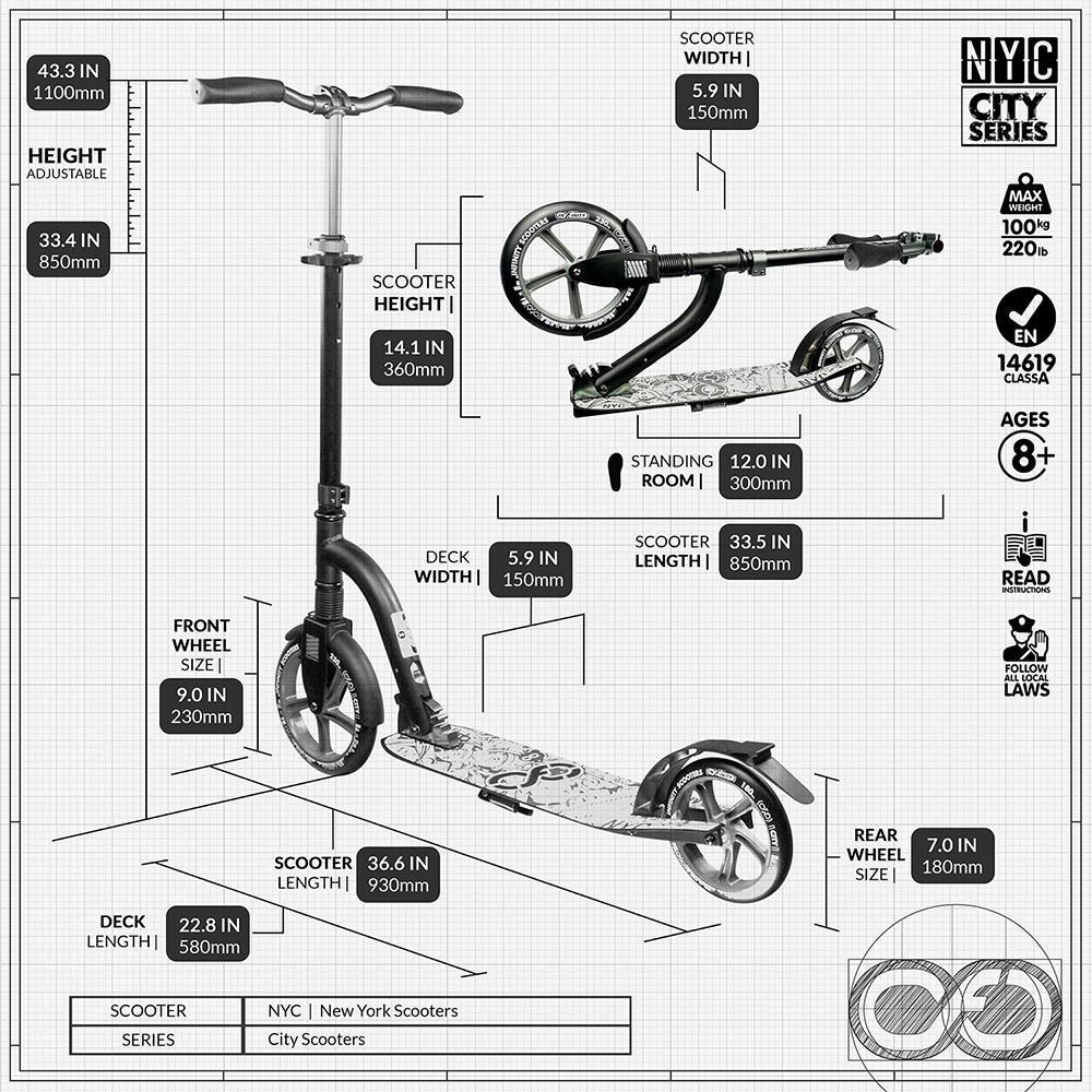 The New York City Series Scooter boasts premium components that ensure a smooth and comfortable ride. With high-quality wheels, responsive brakes, and a sturdy frame, this scooter delivers a safe and enjoyable experience, even on rough city streets.
