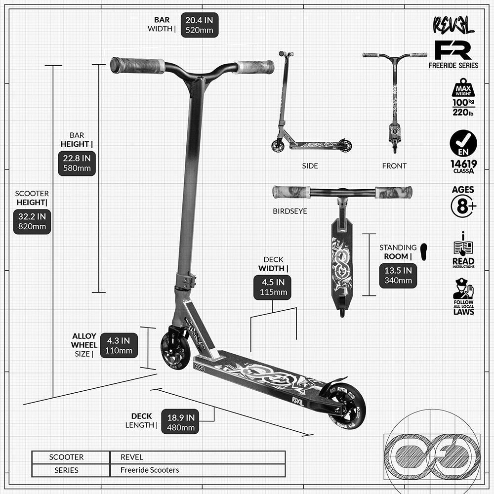 Are you ready to dominate the park and showcase your riding skills with style? Look no further than the all-new REVEL FreeRide FR Series Pro Infinity Scooter! Designed for intermediate to advanced riders, the REVEL is packed with features that will make you stand out from the crowd.