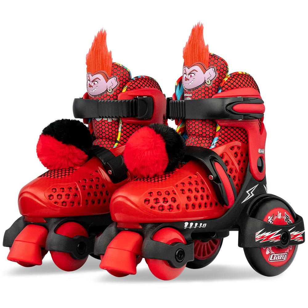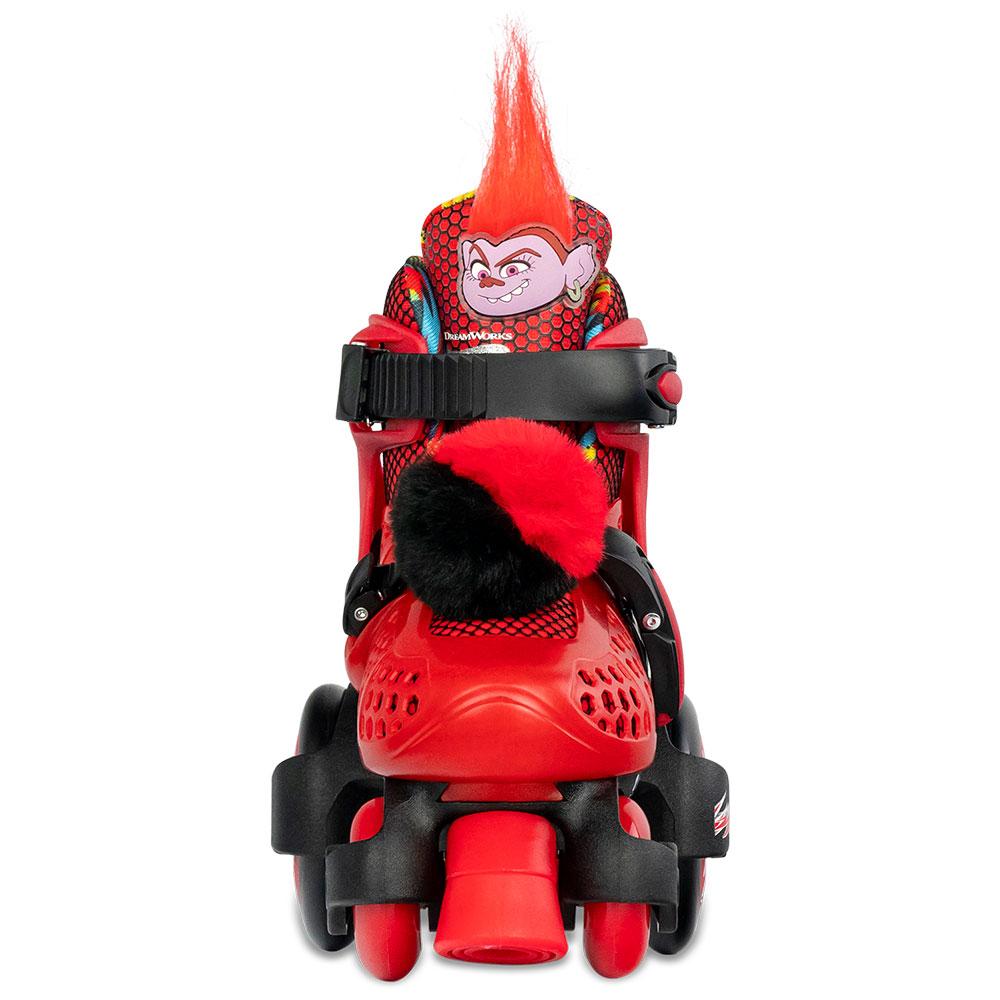 This Klip Klop size-adjustable roller skate is an officially licensed TROLLS product that is inspired by the new Trolls World Tour movie! Choose between skates featuring the two main characters, Poppy or Barb, each with a unique color scheme, Trolls logo, pom pom and colorful character head on the tongue with their signature Crazy Troll hair!