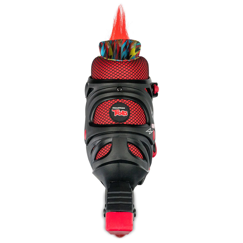 Size-Adjustable Inline Skates, inspired by the hit movie Trolls World Tour! These skates are designed to bring the magic of the Trolls movie to life, with two exciting options to choose from - Poppy or Barb - each featuring a unique color scheme, Trolls logo, and a colorful character head on the tongue complete with their signature Crazy Troll hair! Your child will love showing off their favorite Trolls character while skating around with style and flair.