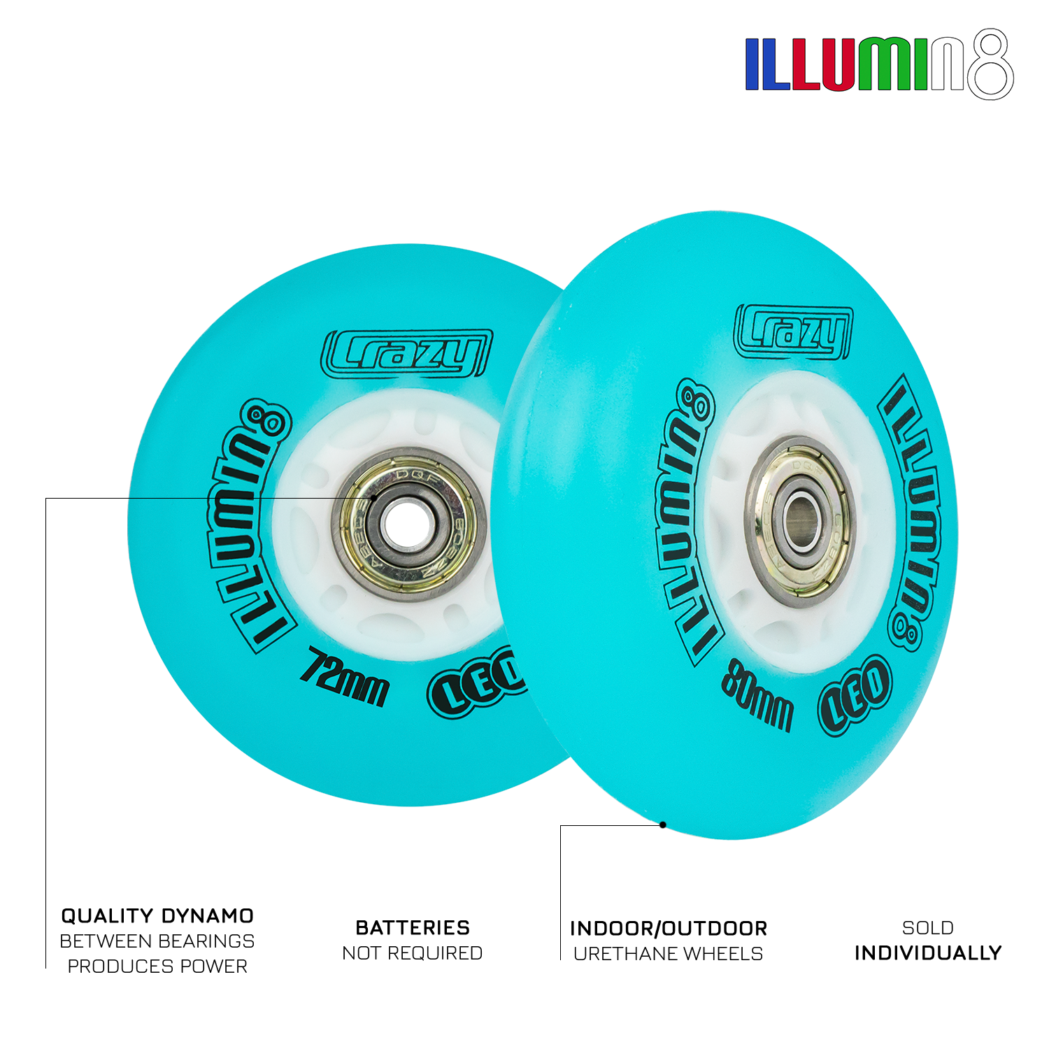 ILLUMIN8 LED LIGHT UP WHEEL - BLUE Available in 72mm, 76mm, 80mm
